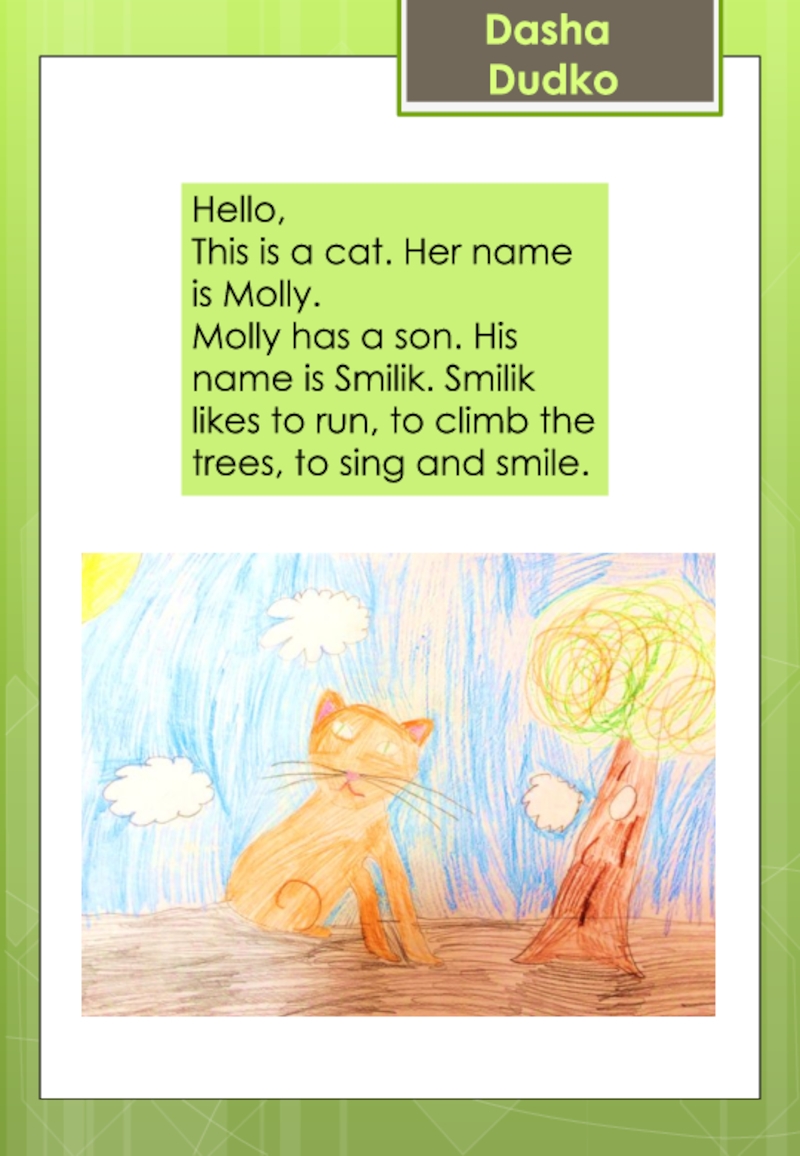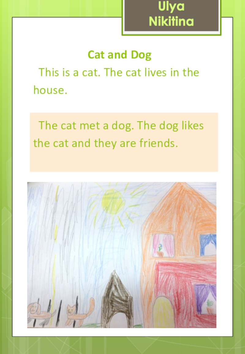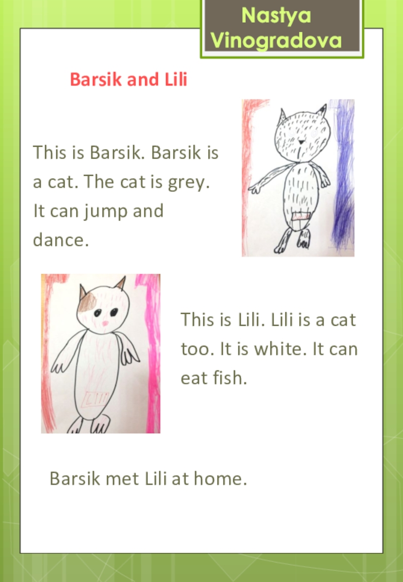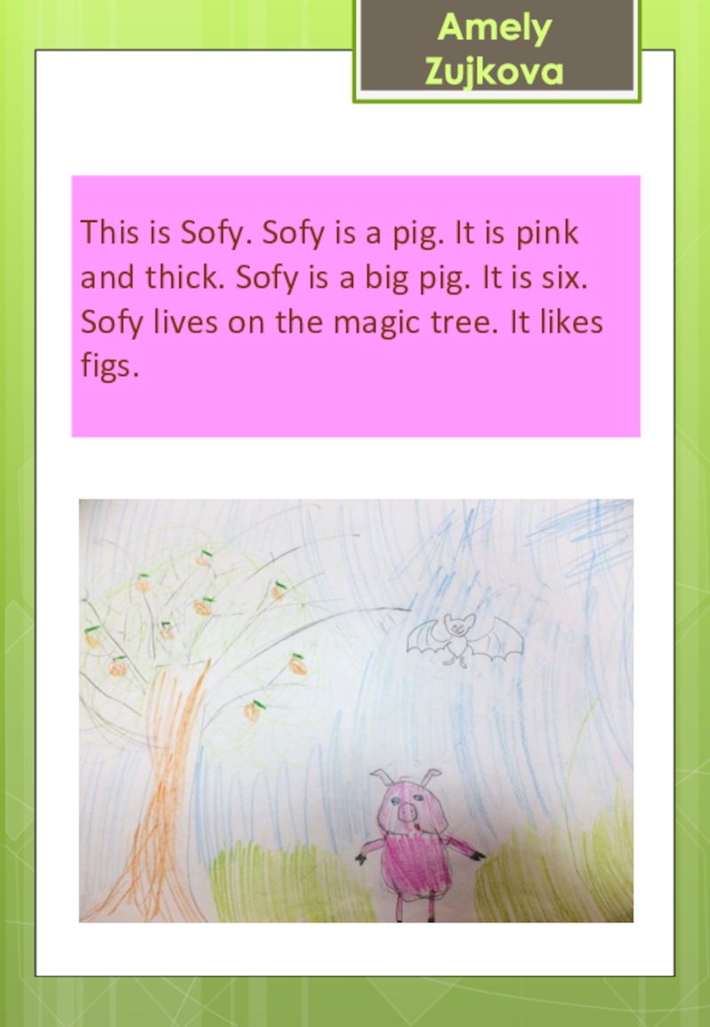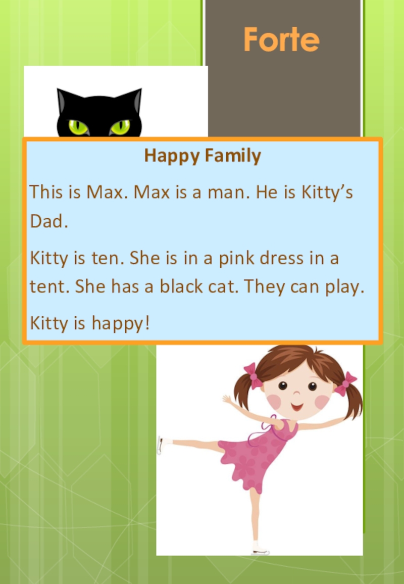 Kitty eats a very big cake. Dan dances. Fomka plays the piano. Lucy sings a happy song. Piggy ate (съел) ten cookies.