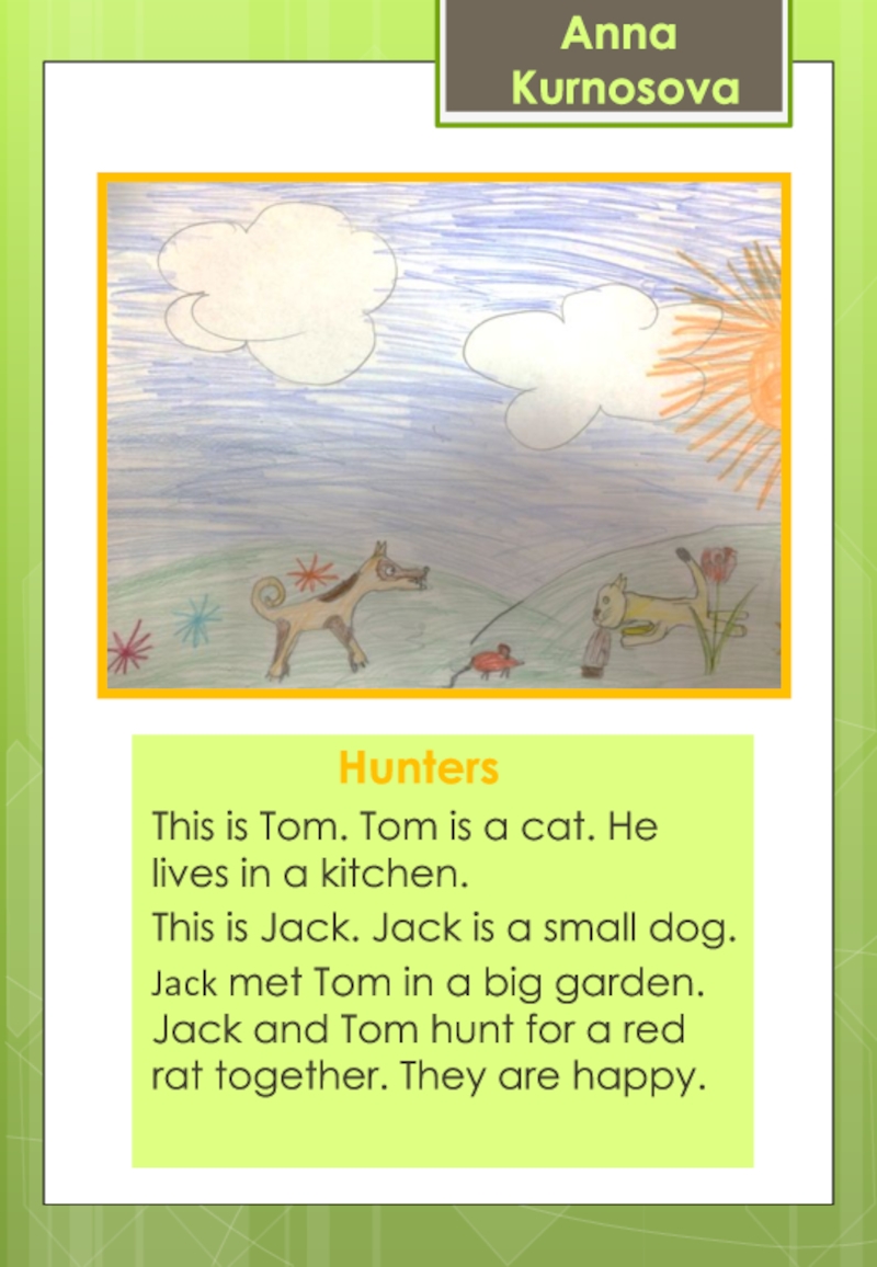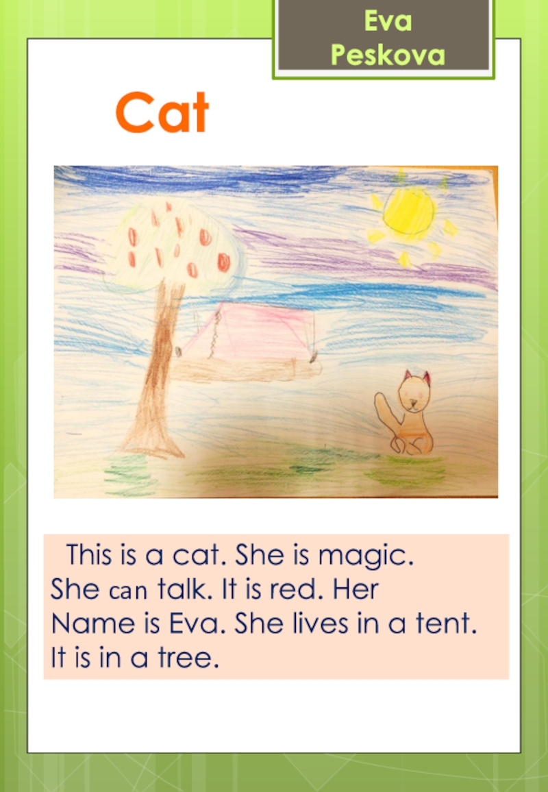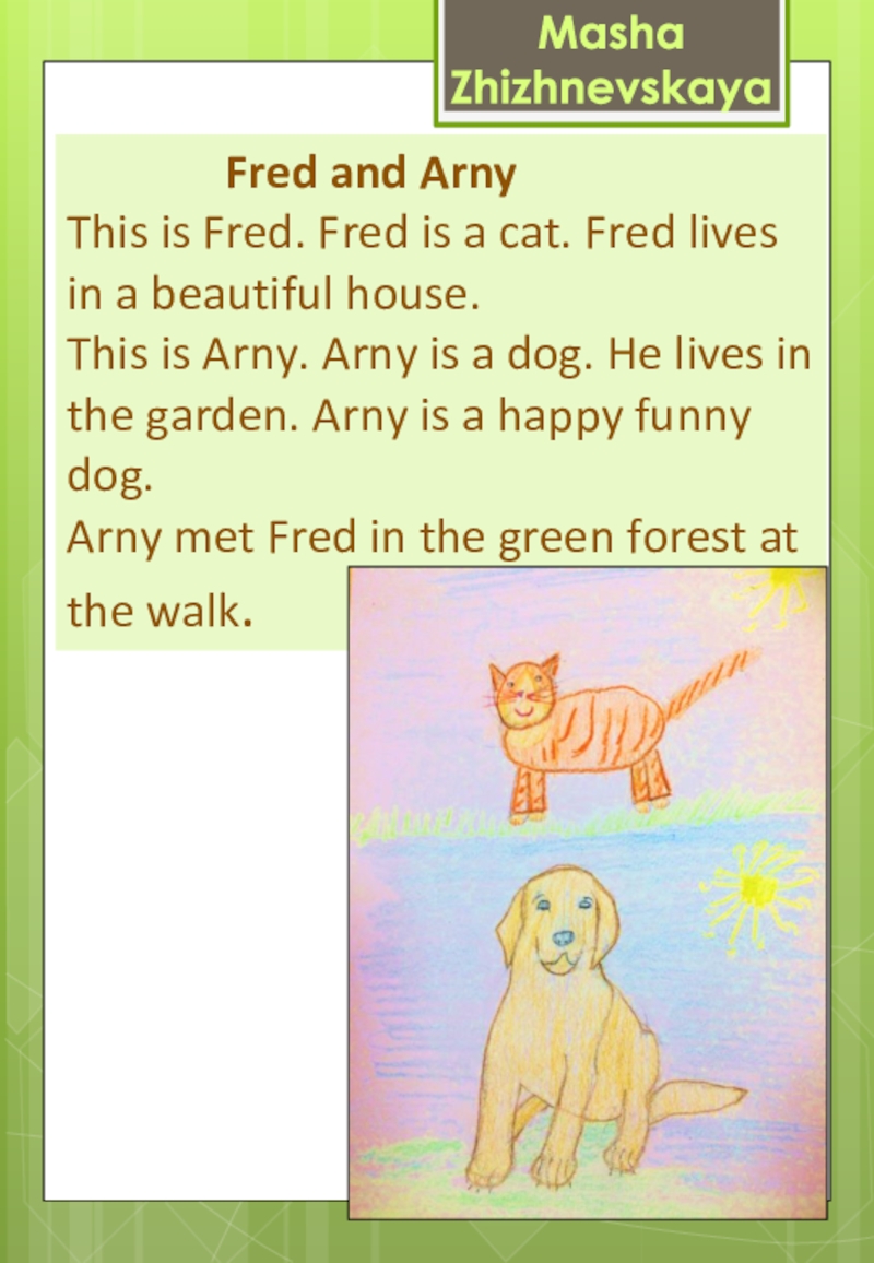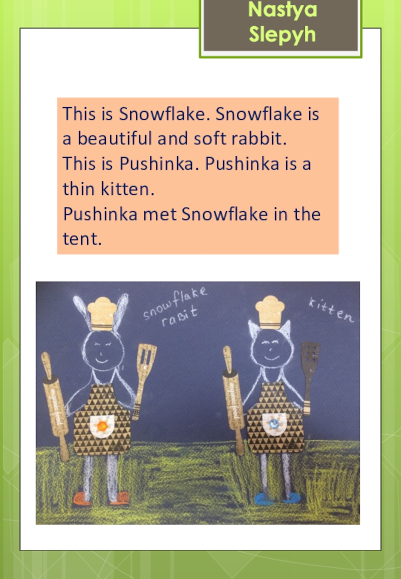 Kitty eats a very big cake. Dan dances. Fomka plays the piano. Lucy sings a happy song. Piggy ate (съел) ten cookies.