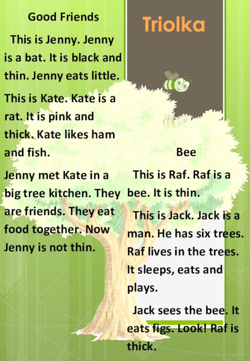 This is Jack. Jack is a man. He has six trees. Raf lives in the trees. It sleeps, eats and plays.