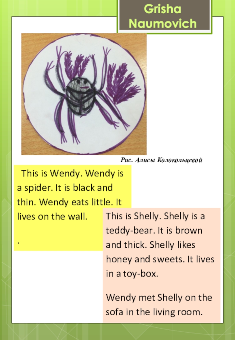 This is Shelly. Shelly is a teddy-bear. It is brown and thick. Shelly likes honey and sweets. It lives in a toy-box.