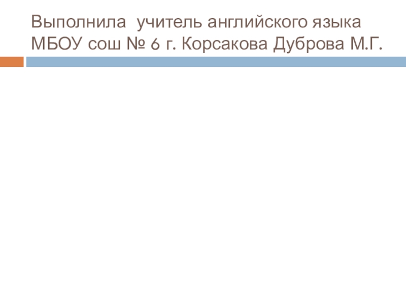 Выполнила учитель английского языка  МБОУ сош № 6 г. Корсакова Дуброва М.Г.