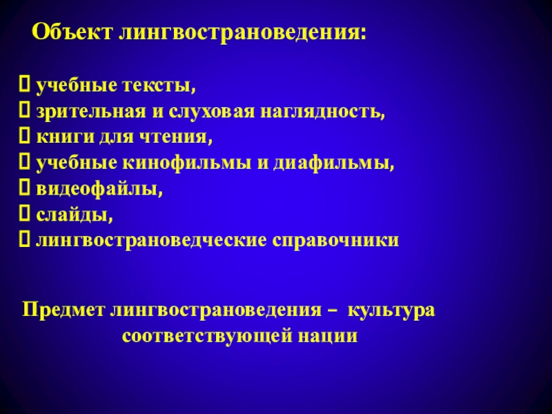 Предмет лингвострановедения – культура
