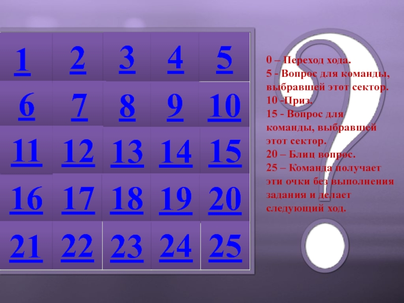 25 – Команда получает эти очки без выполнения задания и делает следующий ход.