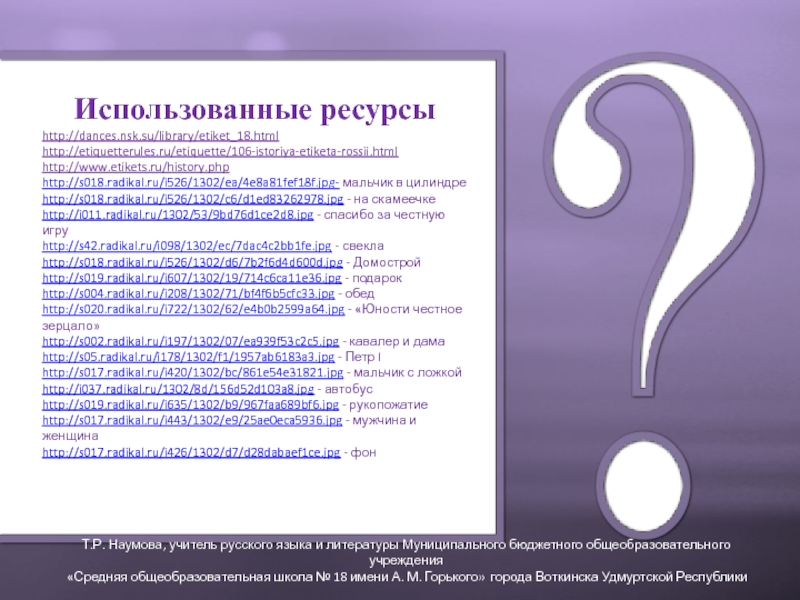 Т.Р. Наумова, учитель русского языка и литературы Муниципального бюджетного общеобразовательного учреждения