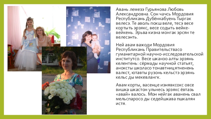 Слайд 9Авань лемезэ Гурьянова Любовь Александровна. Сон чачсь Мордовия Республикань Дубёнкабуень Тыргак