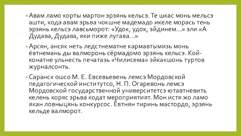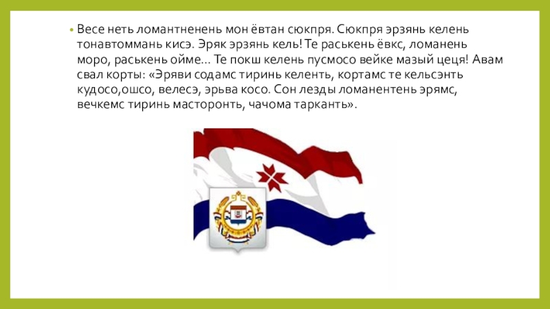 Слайд 5Авам ламо корты мартон эрзянь кельсэ. Те шкас монь мельсэ ашти,