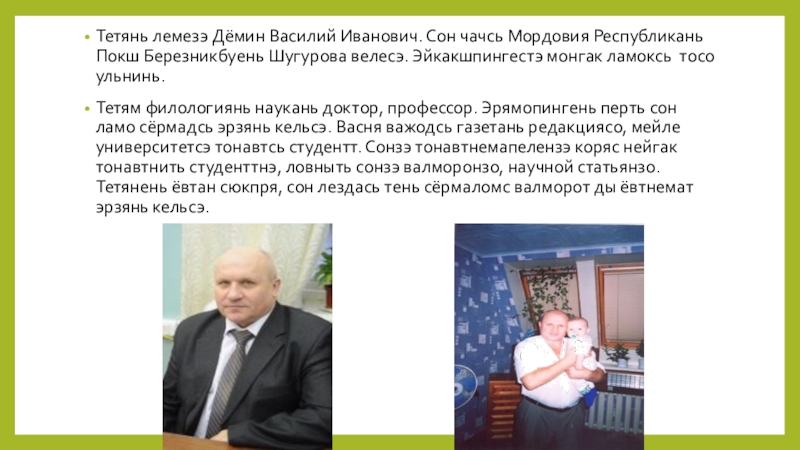 Слайд 11Тетянь лемезэ Дёмин Василий Иванович. Сон чачсь Мордовия Республикань Покш Березникбуень