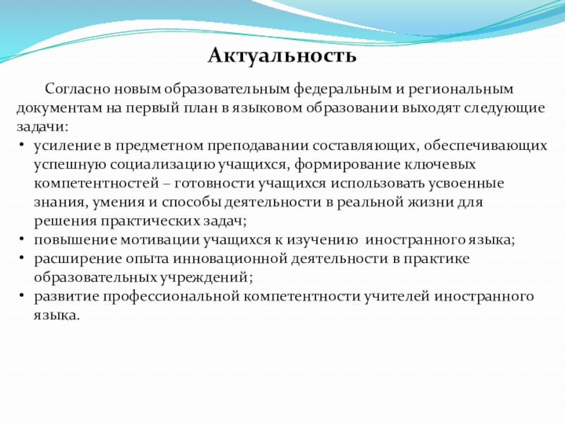 В качестве важнейшей задачи развиваемой концепции иноязычного образования выделяется формирование универсальных
