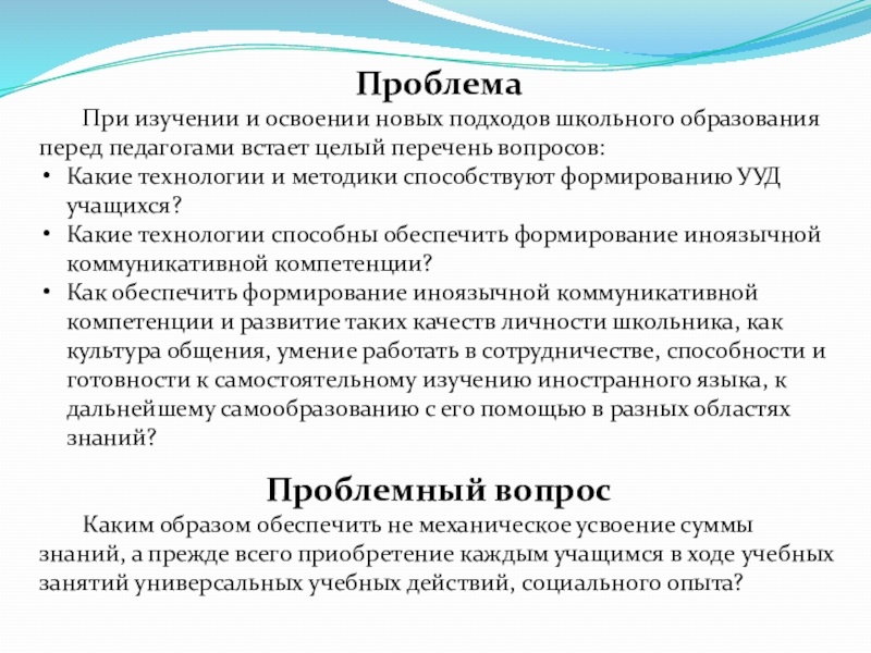 Каким образом обеспечить не механическое усвоение суммы знаний, а прежде всего приобретение каждым учащимся в ходе учебных занятий универсальных учебных действий, социального опыта?