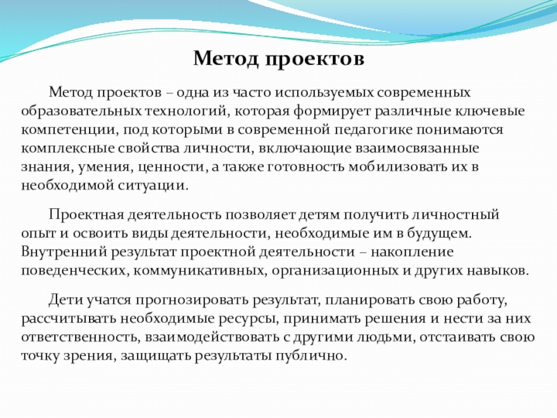 Метод проектов – одна из часто используемых современных образовательных технологий,