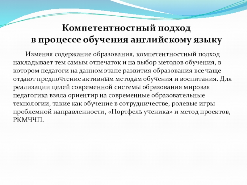 Применение современных образовательных технологий способствует реализации компетентностного подхода на уроках английского языка.