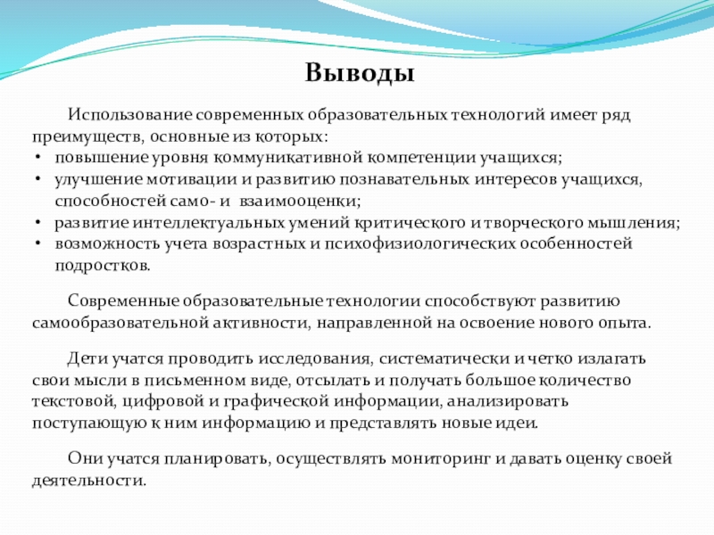 Использование современных образовательных технологий имеет ряд преимуществ, основные из которых: