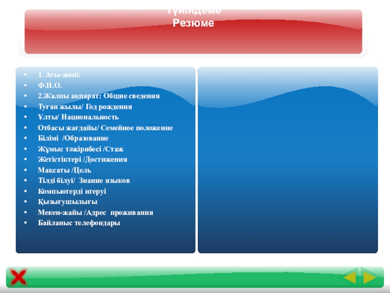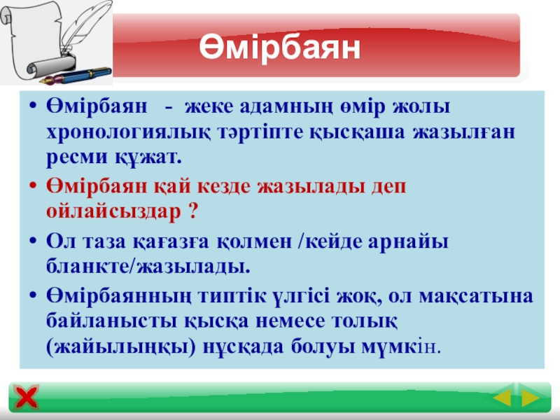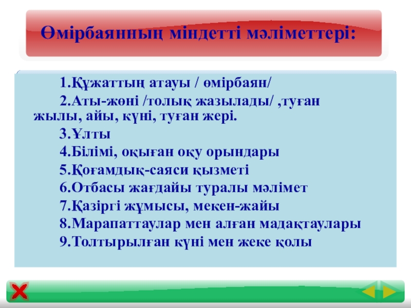 Өмірбаянның міндетті мәліметтері: