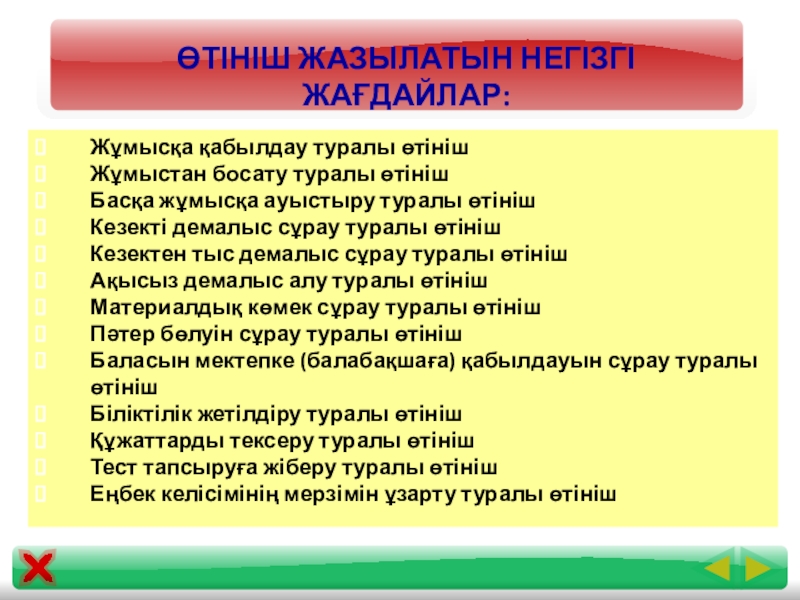 Өтініш жазылатын негізгі жағдайлар: