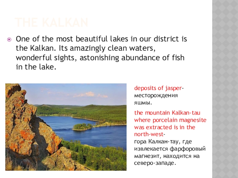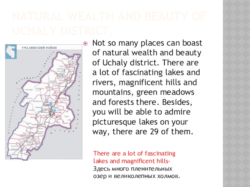 There are a lot of fascinating lakes and magnificent hills- Здесь много пленительных озер и великолепных холмов.