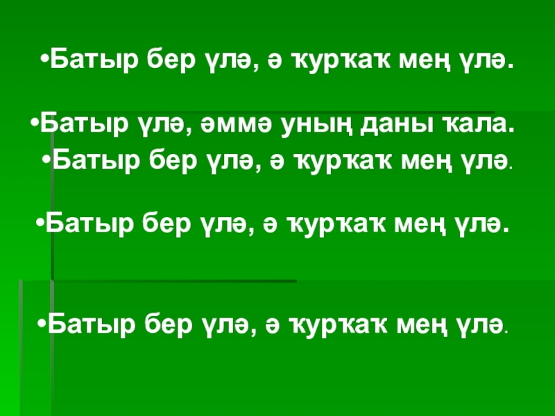 Батыр бер үлә, ә ҡурҡаҡ мең үлә.