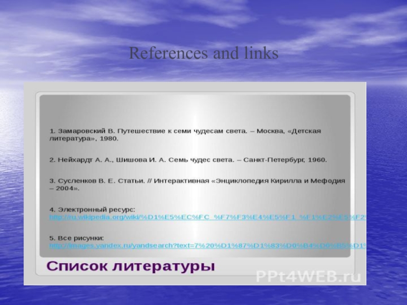 Это сайт презентаций, где можно хранить и обмениваться своими презентациями, докладами, проектами, шаблонами в формате PowerPoint с другими пользователями. Мы помогаем школьникам, студентам, учителям, преподавателям хранить и обмениваться учебными материалами.