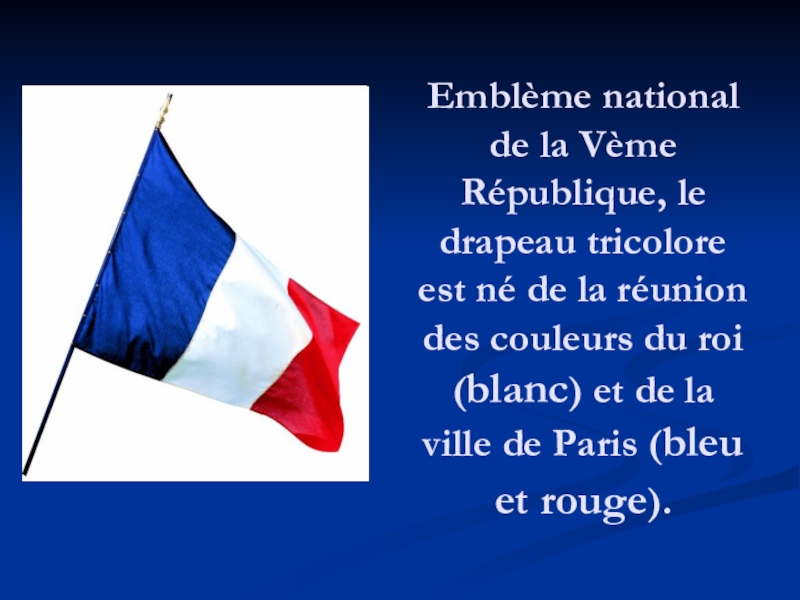 Слайд 5Emblème national de la Vème République, le drapeau tricolore est né