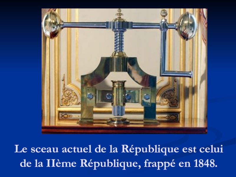 Слайд 8Le sceau actuel de la République est celui de la IIème