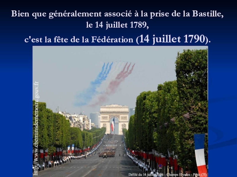 14 juillet 1789, c'est la fête de la Fédération (14 juillet 1790).
