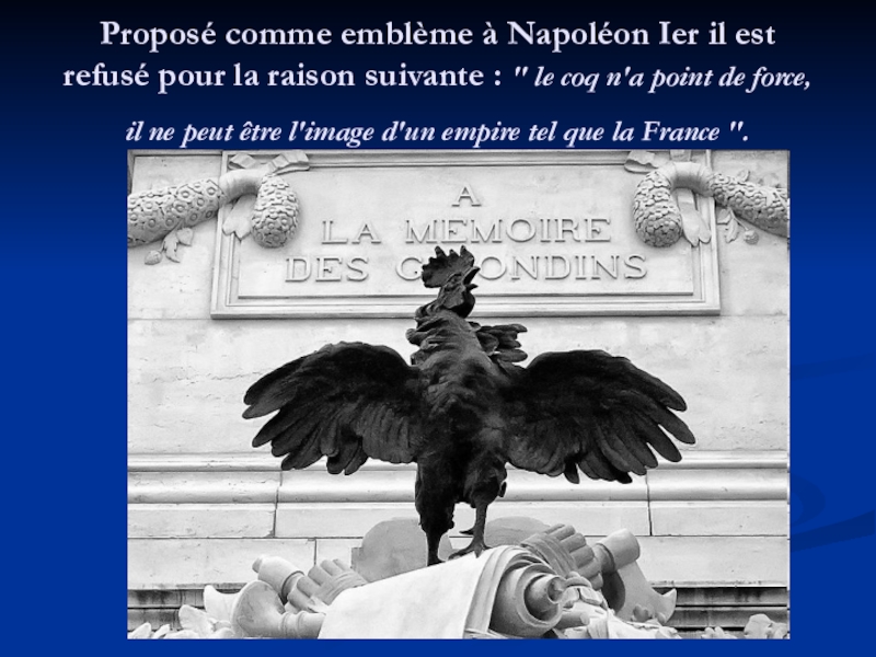 Слайд 18Proposé comme emblème à Napoléon Ier il est refusé pour la
