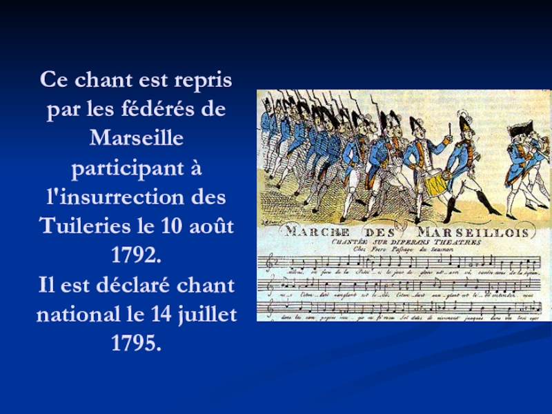 l'insurrection des Tuileries le 10 août 1792. Il est déclaré chant national le 14 juillet 1795.