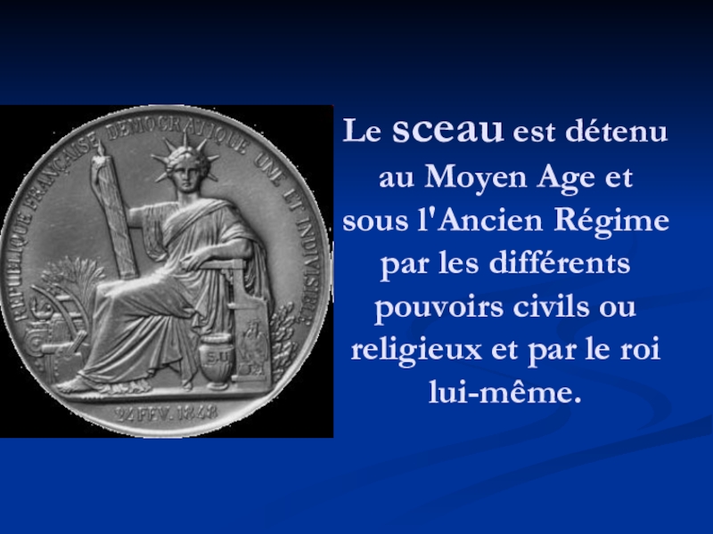 Слайд 7Le sceau est détenu au Moyen Age et sous l'Ancien Régime