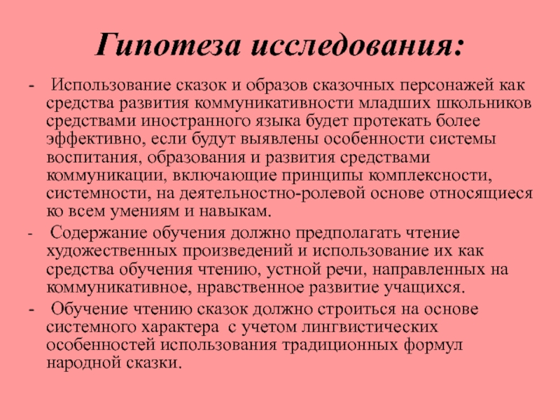 Обучение чтению сказок должно строиться на основе системного характера с учетом лингвистических особенностей использования традиционных формул народной сказки.