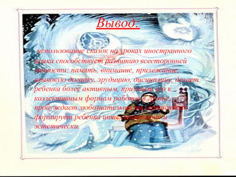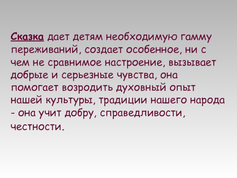 Слайд 9Сказка дает детям необходимую гамму переживаний, создает особенное, ни с чем