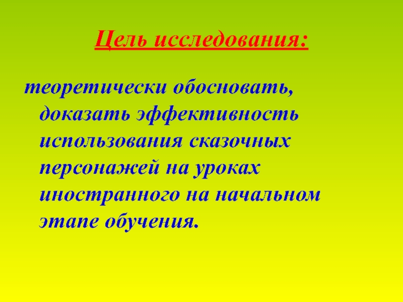 теоретически обосновать, доказать эффективность использования сказочных персонажей на уроках