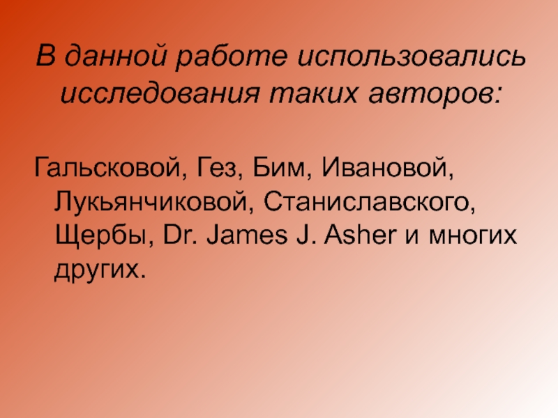 Станиславского, Щербы, Dr. James J. Asher и многих других.