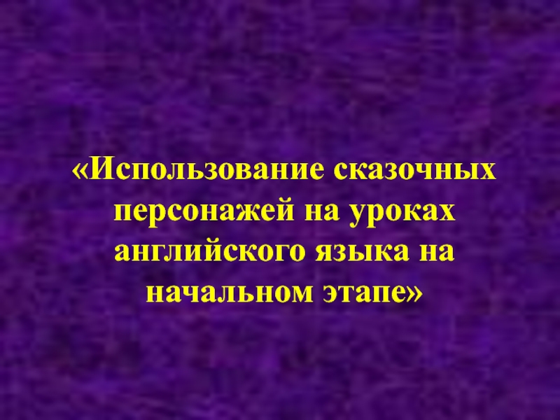 Слайд 1«Использование сказочных персонажей на уроках английского языка на начальном этапе»