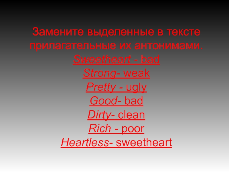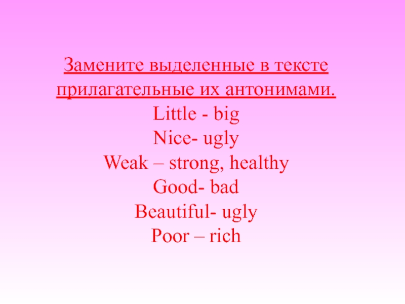 Слайд 16Замените выделенные в тексте прилагательные их антонимами.
