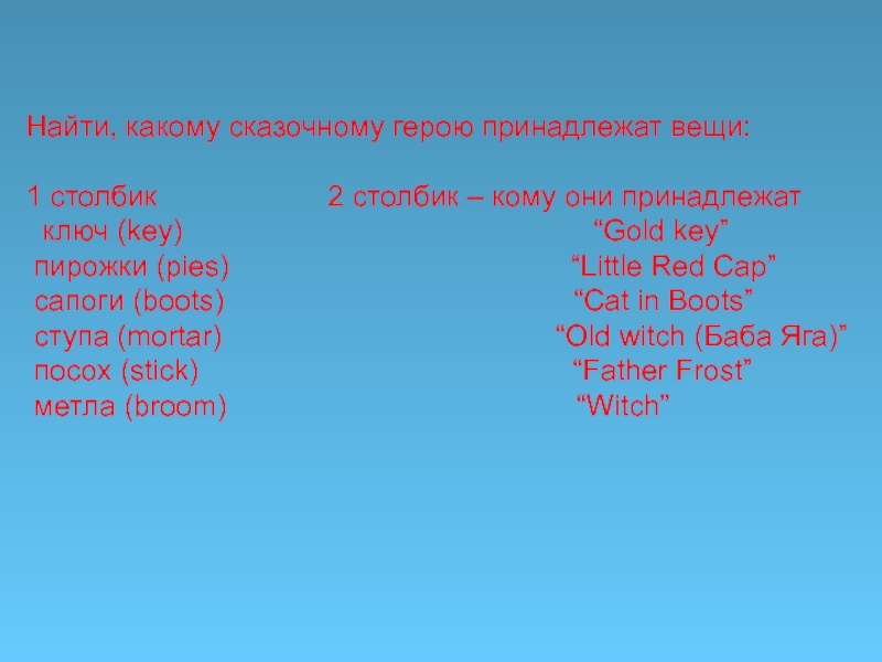 Слайд 19Найти, какому сказочному герою принадлежат вещи: