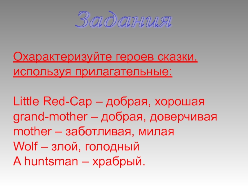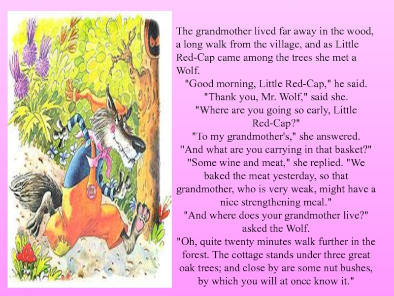 Слайд 23The grandmother lived far away in the wood, a long walk