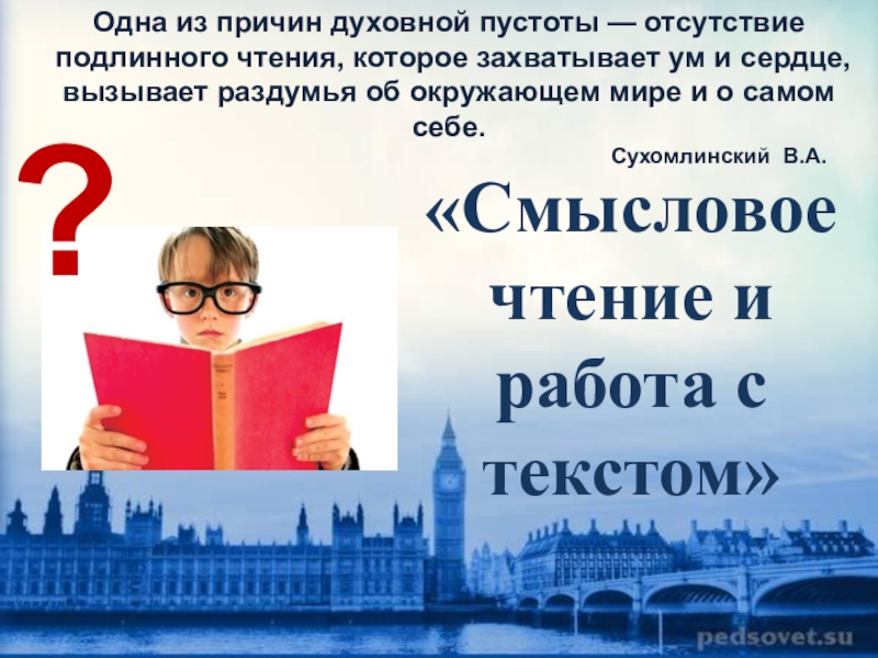отсутствие подлинного чтения, которое захватывает ум и сердце, вызывает раздумья об окружающем мире и о самом себе.
