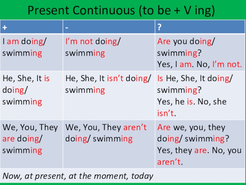 Слайд 29Present Continuous (to be + V ing)