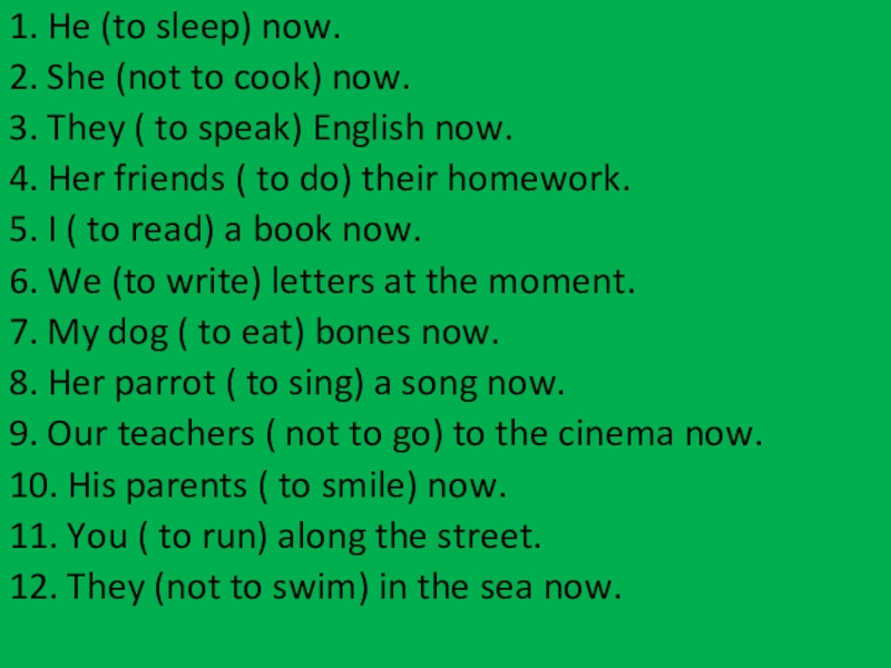 Слайд 301. He (to sleep) now.