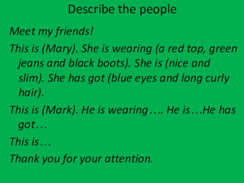 Слайд 28Describe the people
