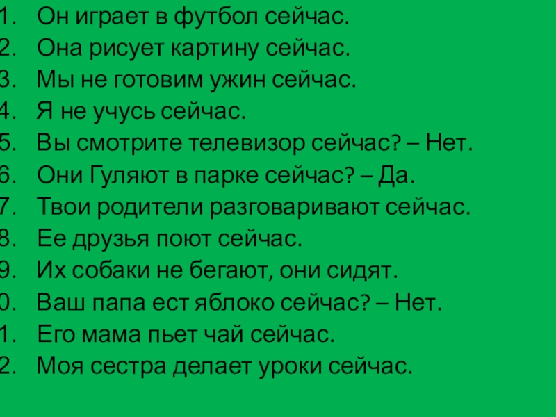 Слайд 31Он играет в футбол сейчас.