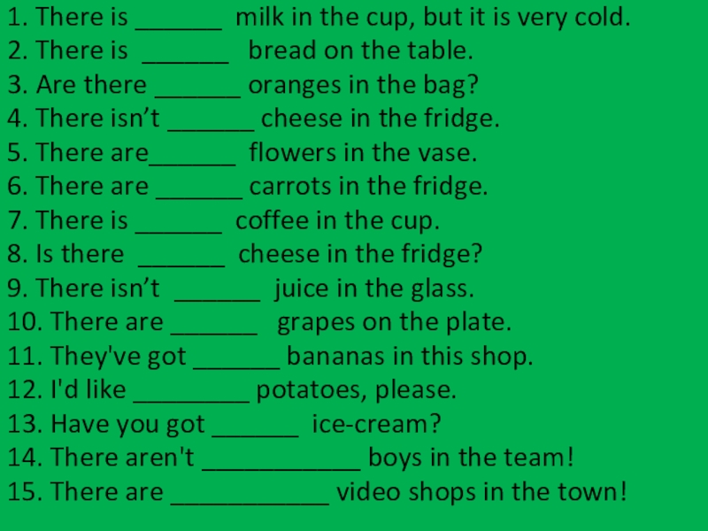 Слайд 371. There is ______ milk in the cup, but it is
