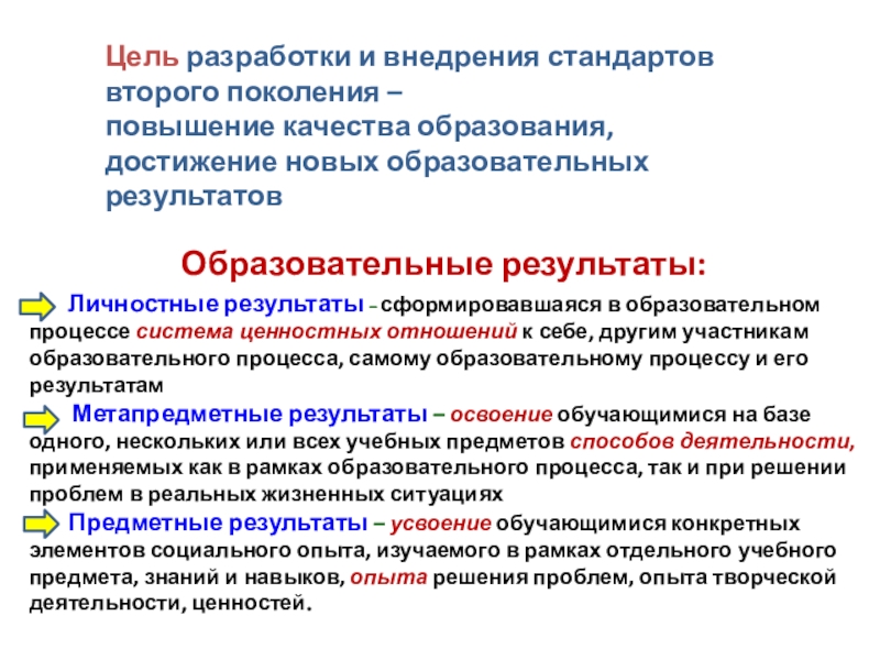 Личностные результаты – сформировавшаяся в образовательном процессе система ценностных отношений к себе, другим участникам образовательного процесса, самому образовательному процессу и его результатам