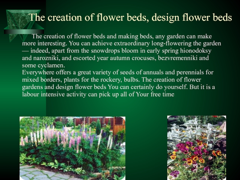 beds and making beds, any garden can make more interesting. You can achieve extraordinary long-flowering the garden — indeed, apart from the snowdrops bloom in early spring hionodoksy and narozniki, and escorted year autumn crocuses, bezvremenniki and some cyclamen.