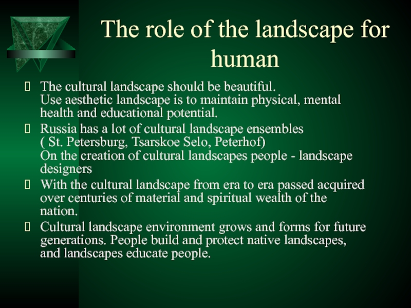 Use aesthetic landscape is to maintain physical, mental health and educational potential.