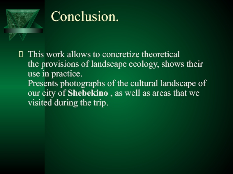Presents photographs of the cultural landscape of our city of Shebekino , as well as areas that we visited during the trip.