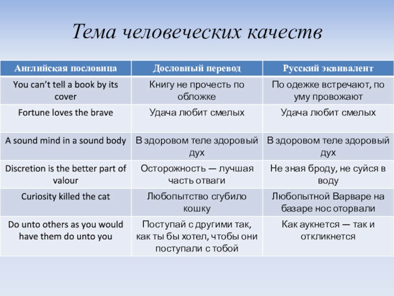 Слайд 9Тема человеческих качеств