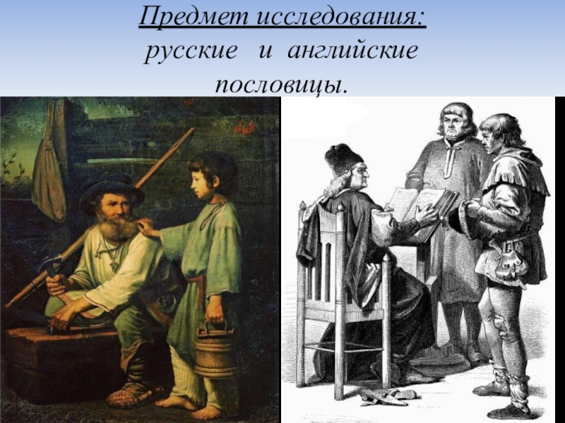 Слайд 4 Предмет исследования: русские и английские пословицы.