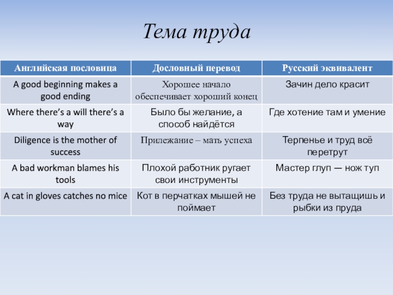 Слайд 8Тема труда