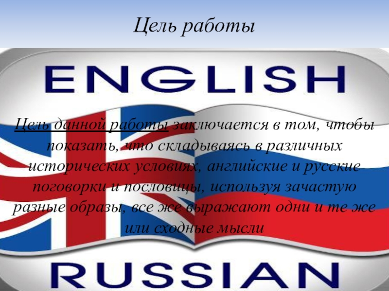Цель работыЦель данной работы заключается в том, чтобы показать, что складываясь в различных исторических условиях, английские и