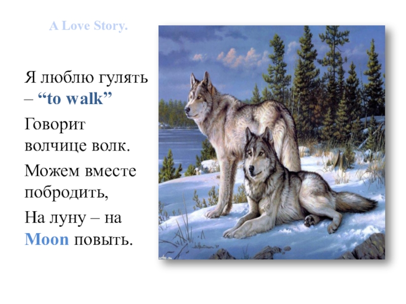 A Love Story.   Я люблю гулять – “to walk” Говорит волчице волк.Можем вместе побродить,На луну